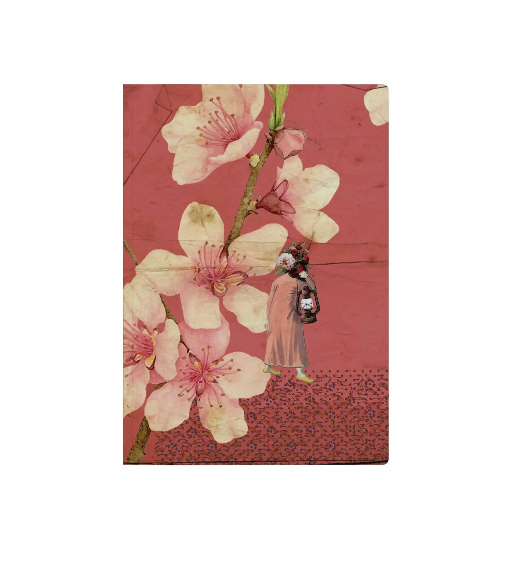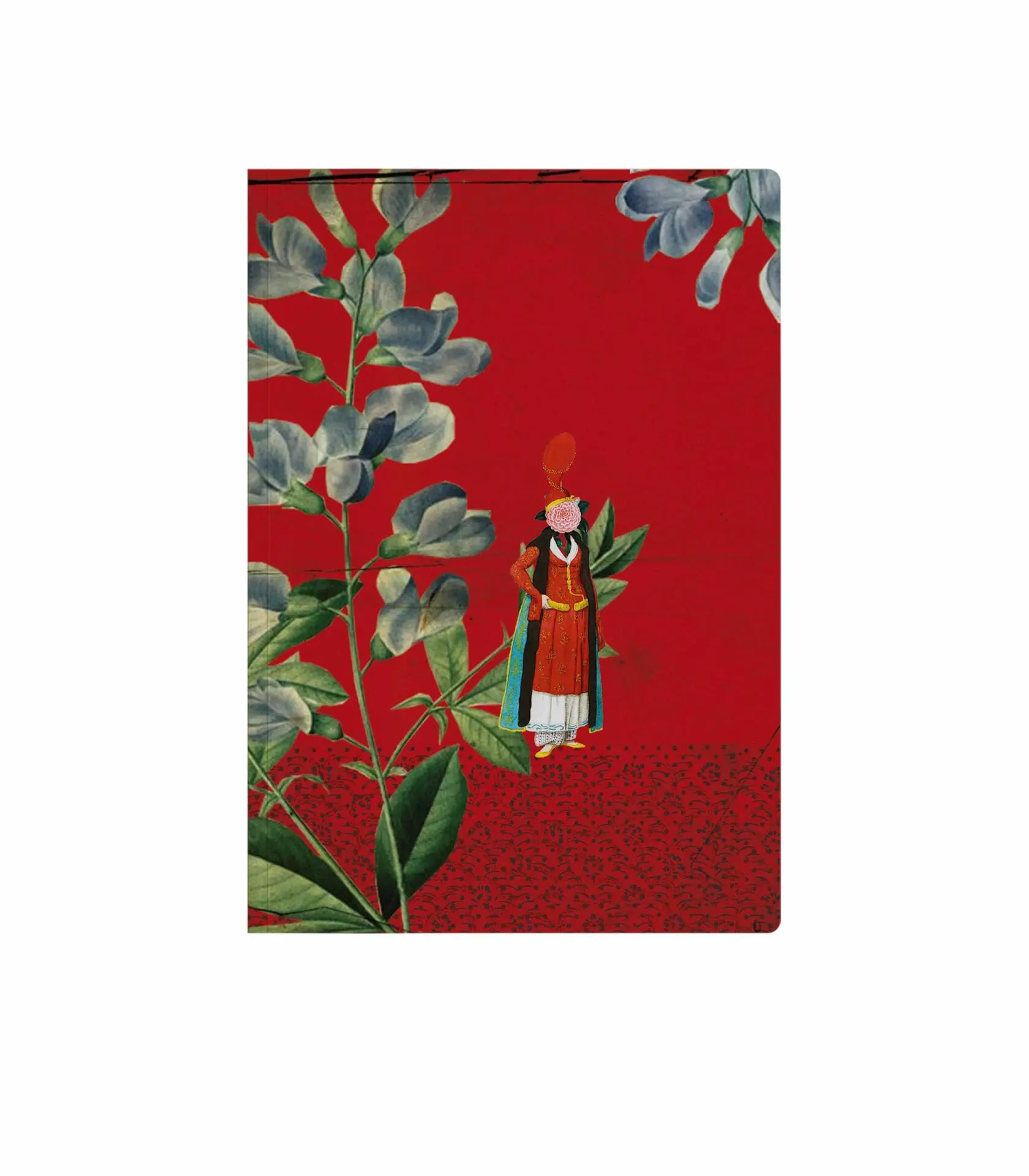Kırmızının içine saklanmış bir figür, sanki uzak bir masaldan çıkıp gelmiş gibi duruyor. Çevresinde dolaşan yapraklar, ona bir şey fısıldıyor mu, yoksa sadece rüzgârın hâli mi bu—ayırt etmek zor. Arka plandaki pembe çiçekler de aynı sessiz oyunun bir parçası; ne olup bittiğini tam söylemiyorlar ama ipuçlarını serip geçiyorlar.