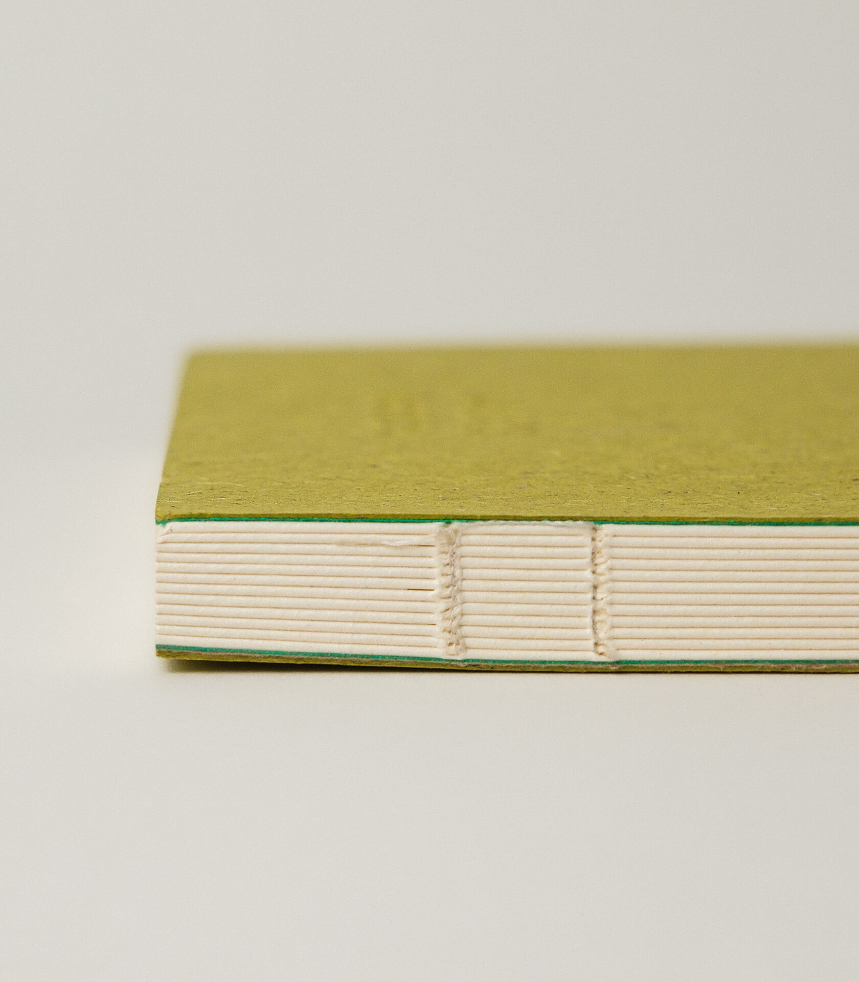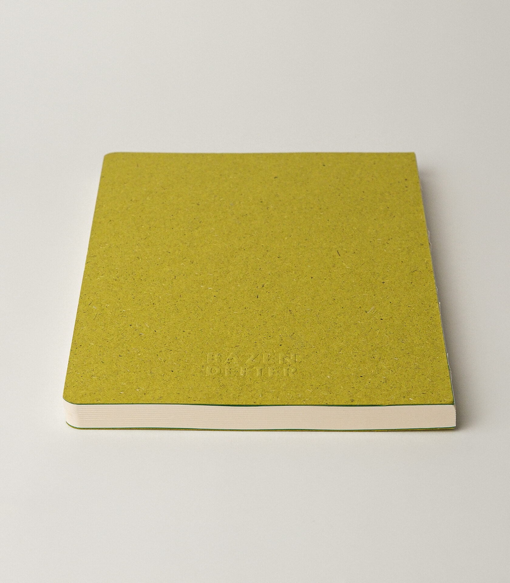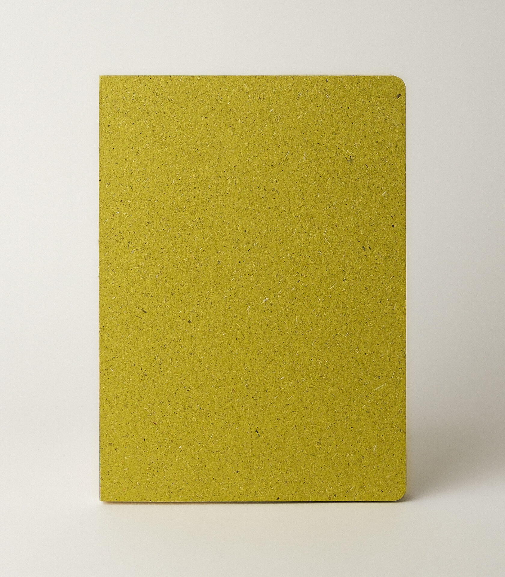 Bu defter, sayfalarını saklamaz; olduğu gibi açılır. Masaya bırakıldığında kendini tutmaz, yayılır, rahat eder. Sert kapağıyla dayanıklı, açık ciltli yapısıyla esnek bir hâli vardır. Kapağında kullanılan geri dönüştürülmüş malzeme ise ona sessiz bir karakter katar; doğaya zarar vermeden var olmanın mümkün olduğunu hatırlatır.