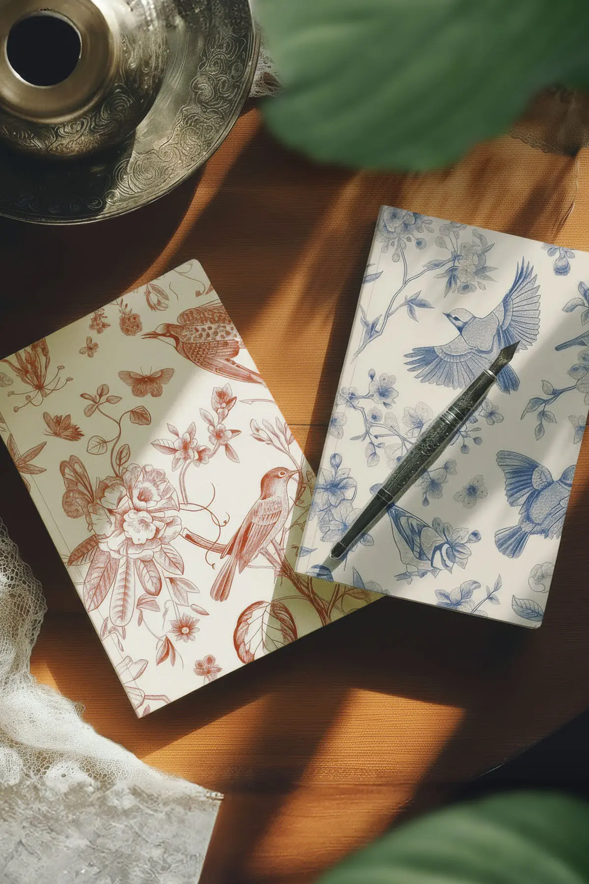 Sanki aynı bahçenin iki ayrı saati bunlar: Biri sabahın ilk ışıkları, öteki günün kızıllığı. Çizgilerin naifliği, kuşların zarif duruşu, çiçeklerin narin dokusu… Hepsi, doğanın kimseye acele etmeden anlattığı küçük bir hikâyeyi taşıyor gibi.