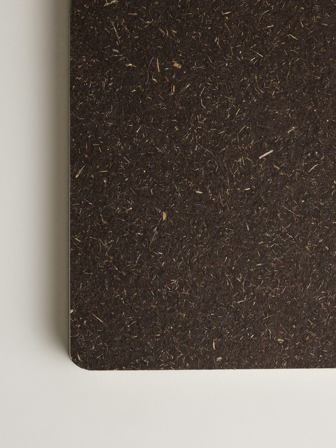 Bu defter, sayfalarını saklamaz; olduğu gibi açılır. Masaya bırakıldığında kendini tutmaz, yayılır, rahat eder. Sert kapağıyla dayanıklı, açık ciltli yapısıyla esnek bir hâli vardır. Kapağında kullanılan geri dönüştürülmüş malzeme ise ona sessiz bir karakter katar; doğaya zarar vermeden var olmanın mümkün olduğunu hatırlatır.