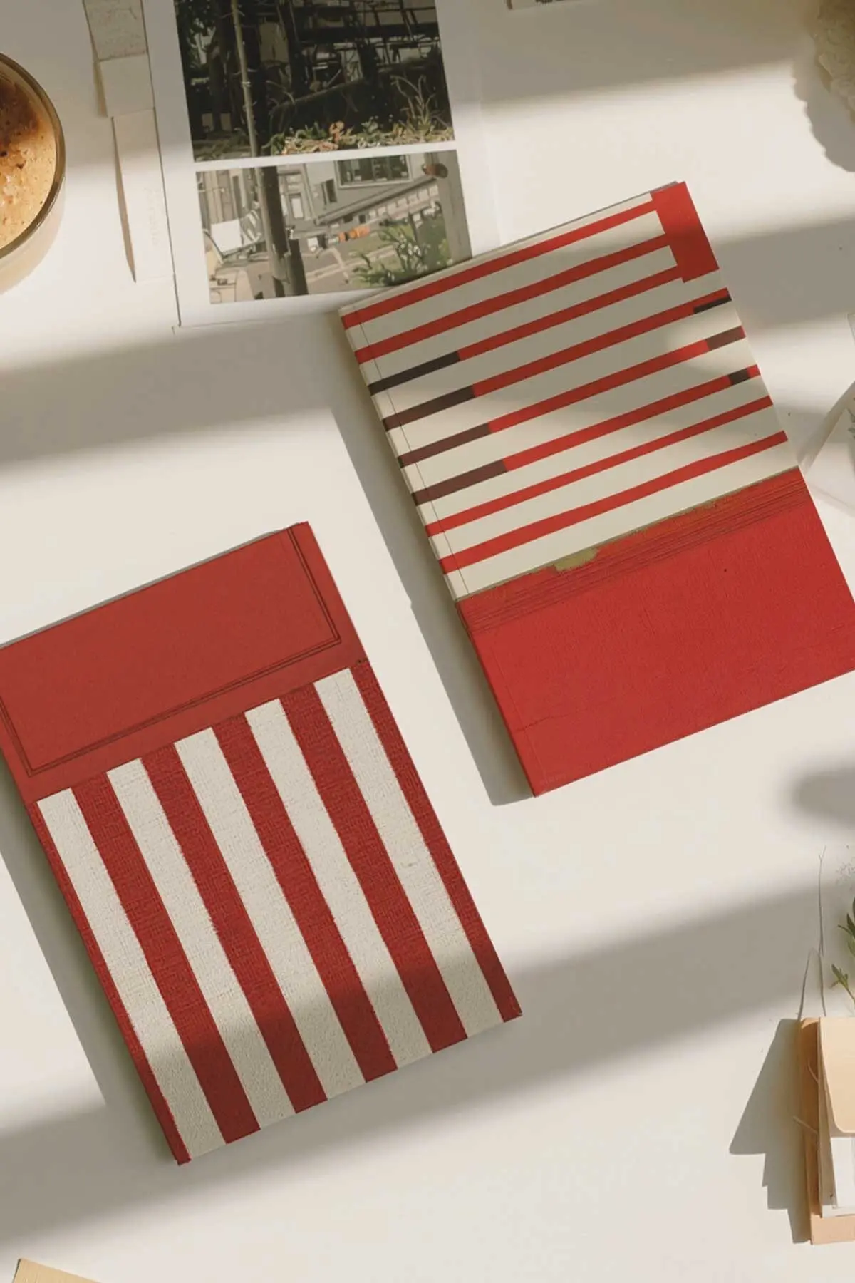 Bu iki tasarımda çizgiler kimi zaman düzenli, kimi zaman hafifçe kırık; tıpkı günlük hâllerimiz gibi. Bir gün net, diğer gün biraz dağınık… Ama her durumda canlı, sıcak ve dürüst. Kırmızının taşıdığı o açık sözlü enerji burada da kendini belli ediyor: Saklamıyor, süslemiyor — sadece varlığını paylaşıyor.
