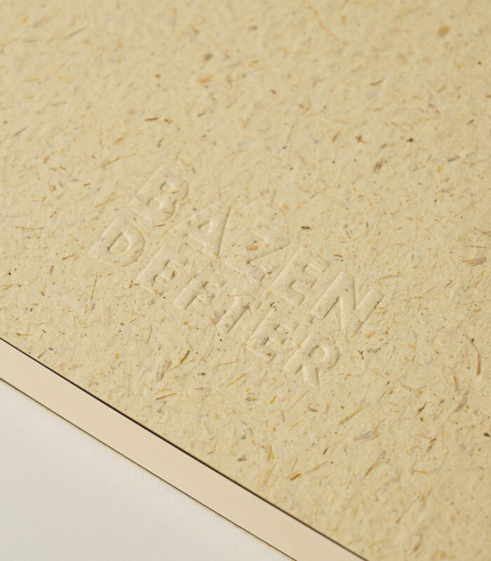 Bu defter, sayfalarını saklamaz; olduğu gibi açılır. Masaya bırakıldığında kendini tutmaz, yayılır, rahat eder. Sert kapağıyla dayanıklı, açık ciltli yapısıyla esnek bir hâli vardır. Kapağında kullanılan geri dönüştürülmüş malzeme ise ona sessiz bir karakter katar; doğaya zarar vermeden var olmanın mümkün olduğunu hatırlatır.