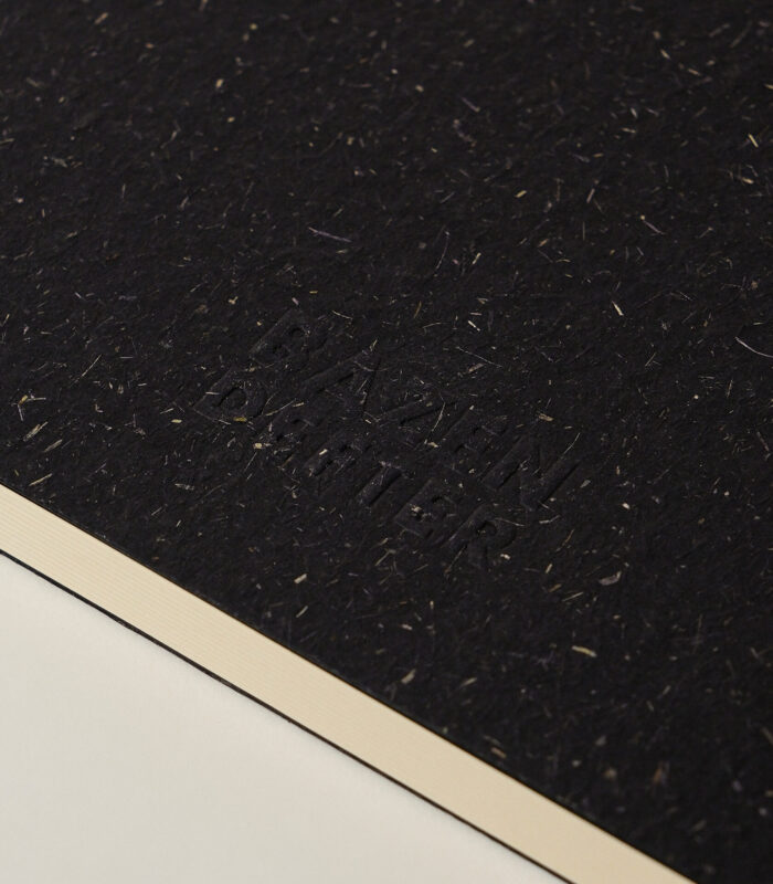 Bu defter, sayfalarını saklamaz; olduğu gibi açılır. Masaya bırakıldığında kendini tutmaz, yayılır, rahat eder. Sert kapağıyla dayanıklı, açık ciltli yapısıyla esnek bir hâli vardır. Kapağında kullanılan geri dönüştürülmüş malzeme ise ona sessiz bir karakter katar; doğaya zarar vermeden var olmanın mümkün olduğunu hatırlatır.