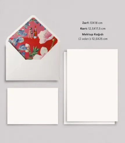 Çiçek Desenli Kırık Beyaz Zarf