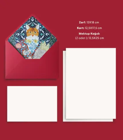 Kedi Desenli Kırmızı Zarf